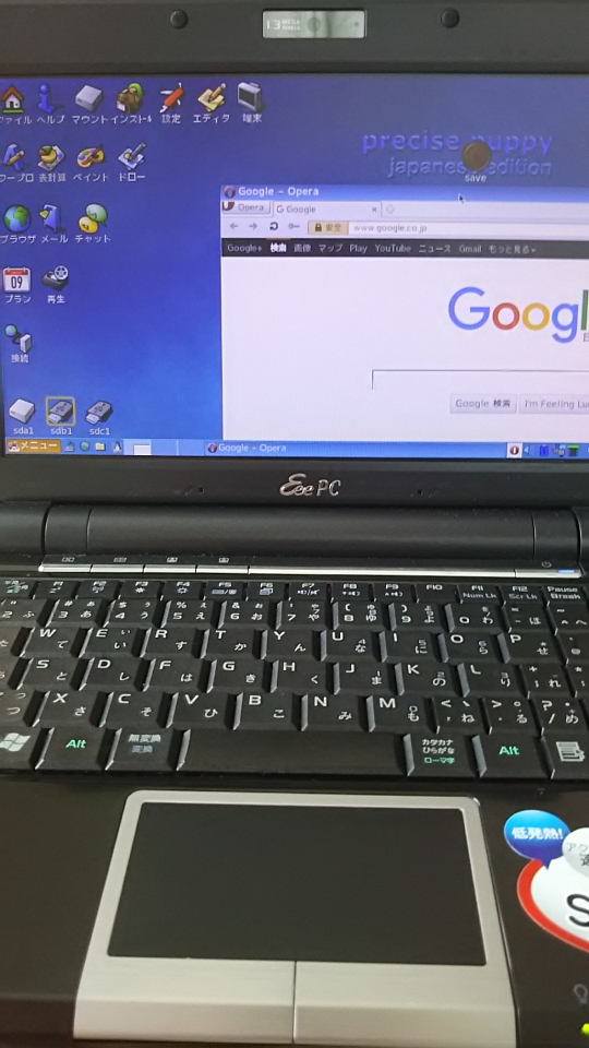 最初はChromium flowにトライしましたが、eeePCの無線LANを認識せず、有線LANもUSB接続でないと駄目らしく認識せず、スマホのUSBテザリングもブツブツ途切れてログイン不能。