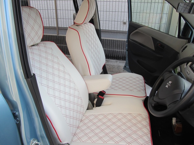 ワゴンR(MH34S)FXをいじる:その2 Clazzio シートカバー キルティング ホワイトxレッドタイヤ・ホイールに続いては、シートカバーの交換です。