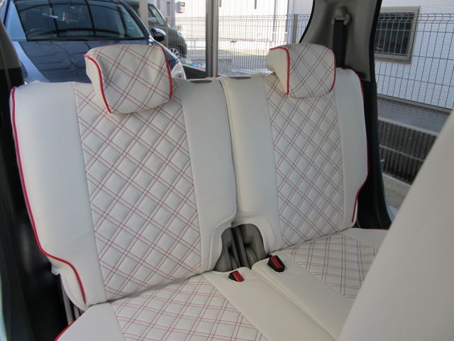 N-BOXスラッシュのカリフォルニアダイナーのようなシートが大好物なので、クラッツィオのキルティングタイプシートカバーのホワイトxレッドをチョイスしました。